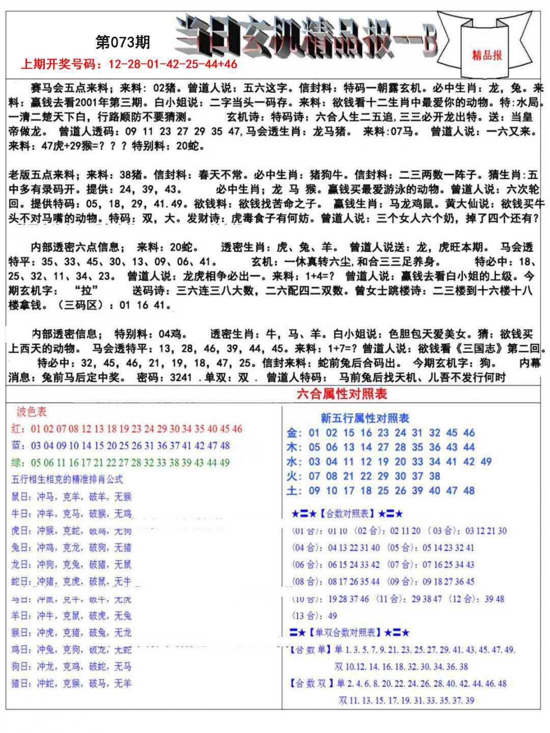当日玄机精品报B