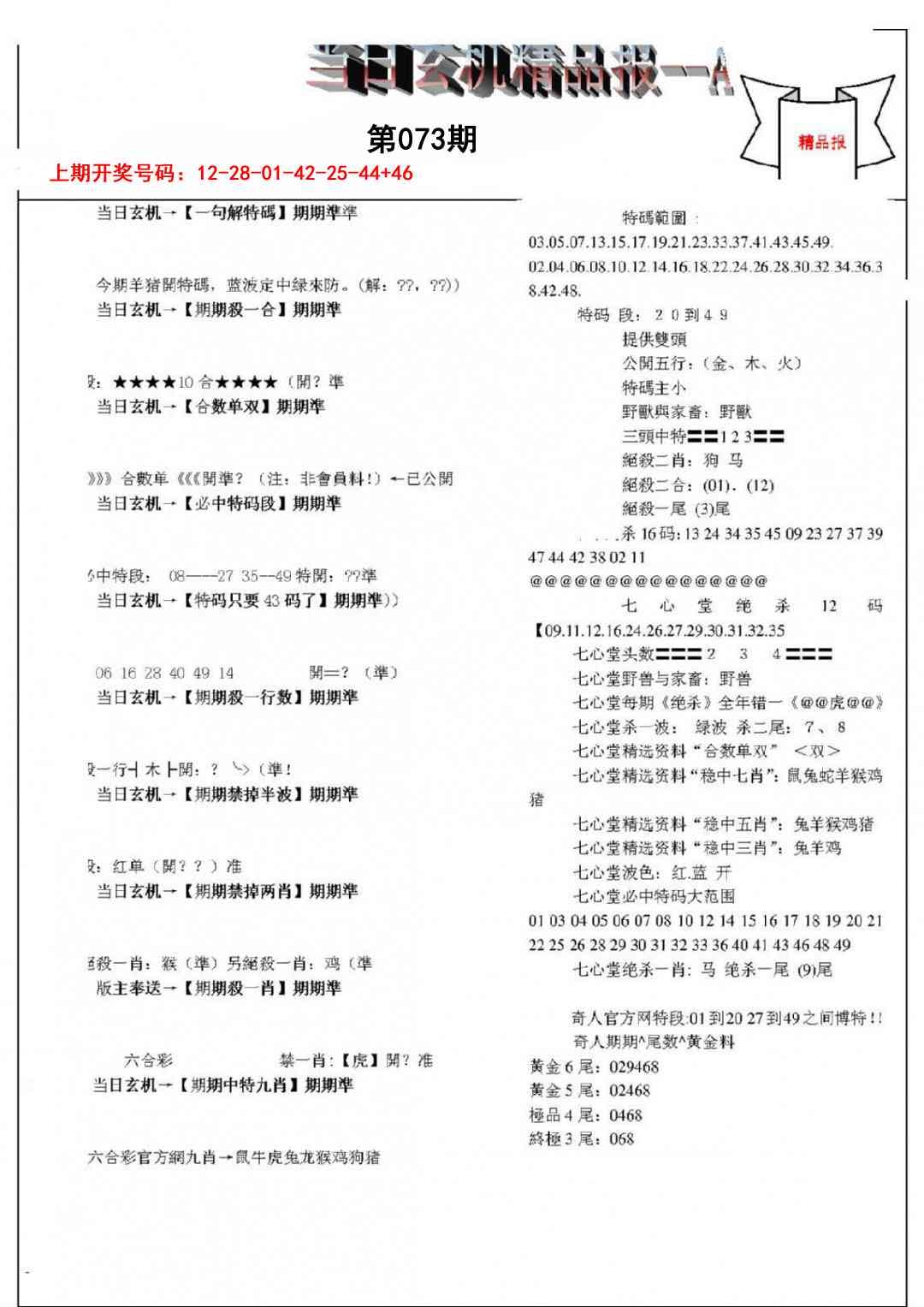 当日玄机精品报A